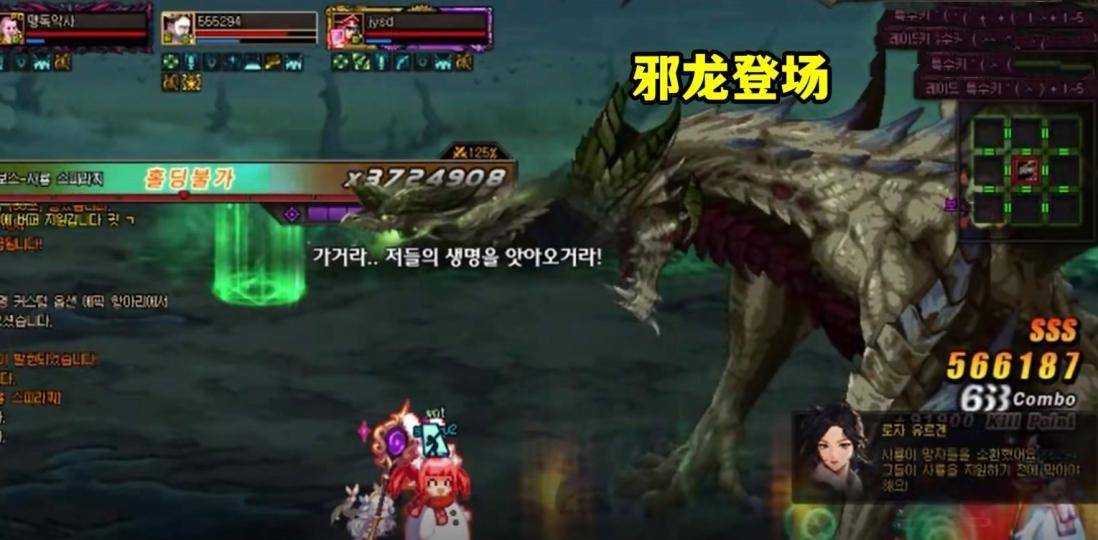 狂龙血条下有1个愤怒条,当满100时,出现倒计时读条,狂龙飞到地图中间,满屏大吼,此时可以输出,在读条快满时,迅速跑到“右边房间”躲避全屏攻击。