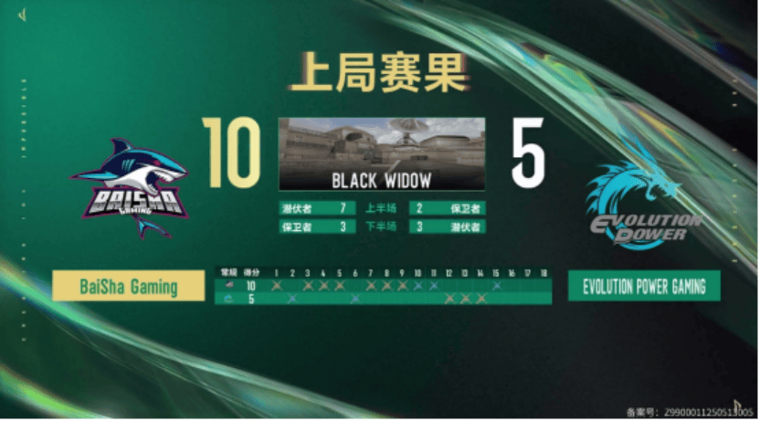 总决赛由白鲨对阵EP。第一局潜艇,白鲨.斗鱼进攻双向门接连打成,N9、577双突发力,半场取得7:2的领先优势。换边之后,YZK接连打出精彩击杀,EP.快手连续追分,后续YDSS回防收下关键残局,白鲨.斗鱼以10:6的比分率先赢下第一局,总比分1:0领先,N9获得本局MVP。