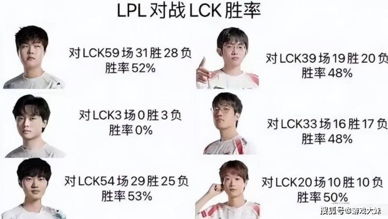 从统计结果来看,中单选手左手(Knight)是目前“抗韩”数据最亮眼的选手,他在职业生涯中对阵LCK战队的总战绩为29胜25负,总胜率53%,在LPL所有选手中高居第一,作为TES的中流砥柱,Knight的个人发挥向来稳定,他的对线能力和团战输出能力,是LPL粉丝最为放心的存在,而紧随其后的,则是Bin和Gala,两人的对韩胜率均为52%,同样展现出相当不错的稳定性,Bin在上路的强硬对拼,以及Gala在团战中的收割能力,都是LPL与LCK对抗的重要武器。