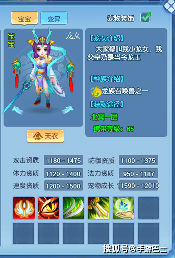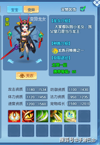 龙女除了长得好看,实力也不俗,至少在65级阶段的同僚中是这样。龙女的资质可以说是非常耀眼,1534的攻击资质,速度更是相当优秀,只要经过简单的培养就可以打出高额伤害。