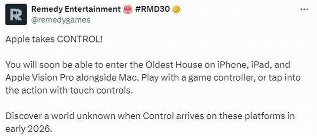 近日Remedy Entertainment宣布,《控制》将登陆苹果iPhone、iPad和Vision Pro平台,预计于2026年初上线。