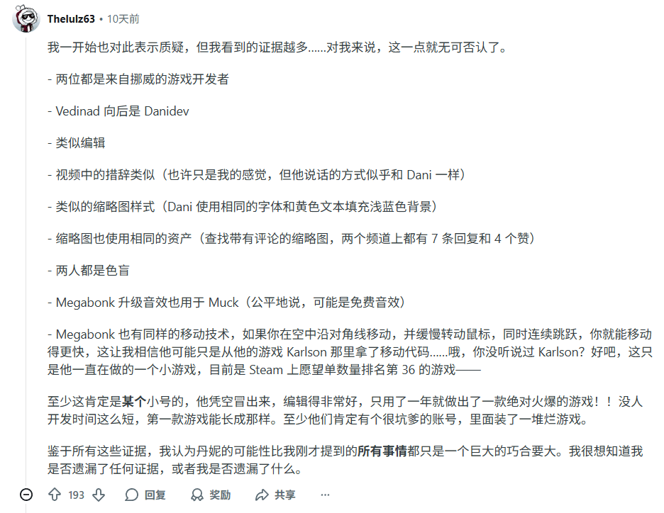 随着越来越多Dani粉丝下场挖掘,两者似乎是同一人的证据也越来越多:同样来自挪威、都是色盲、剪辑手法相似、视频里的措辞相似、似乎采用相同的技术、Vedinad还侧面回复了「Dani回归」的评论……