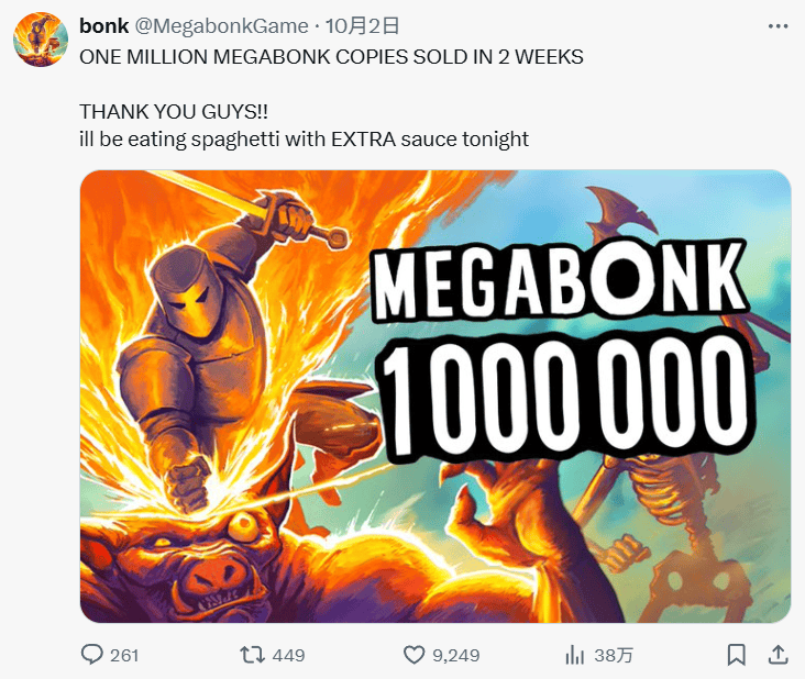 除了产品本身对品类的突破,《Megabonk》最为人乐道的,是又一个小成本独游成了爆款的传奇故事。