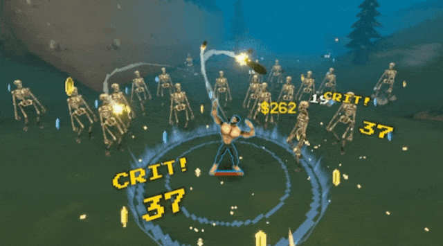 当然《Megabonk》也有属于自己的搞怪风格。游戏中随处可见诙谐逗趣的元素,墨镜大猩猩、滑板骷髅架子、骚包兄贵……当构筑成体系后,满屏幕的爆炸特效,甚至能让屏幕闪得像是发癫,某种意义上这也是《Megabonk》的乐趣所在。