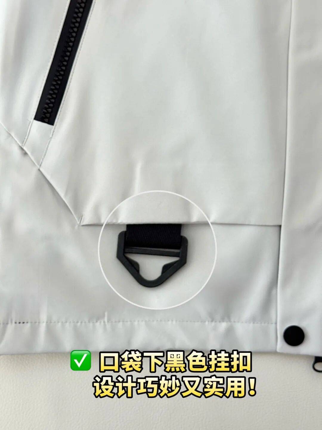 口袋下黑色挂扣设计巧妙又实用!实现挂饰自由钥匙、小玩偶...想挂啥挂啥徒步/通勤都能DIY专属风格实用性拉满还超有范儿!
