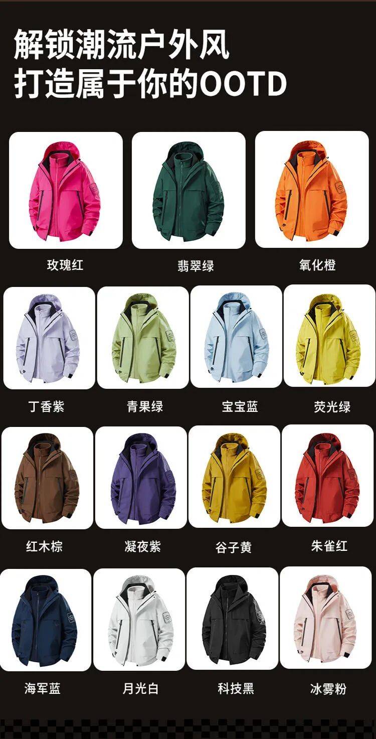 超级多颜色任选,运动黑科技日常穿着都酷劲十足,无论是春秋换季还是寒冷的冬天冲锋衣一定是必不可少的穿搭法宝!