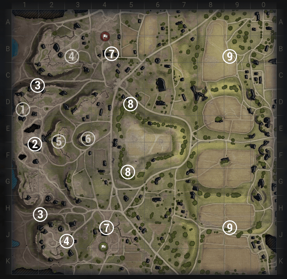为此,WG调整了这里的设计,安排了一组略有起伏的丘陵地形。这样一来双方的中坦就可以在中部对射,能形成交互。0线的丘陵也修改为一条类似浪漫之城外线的通道,允许车长们从这里开始进攻。