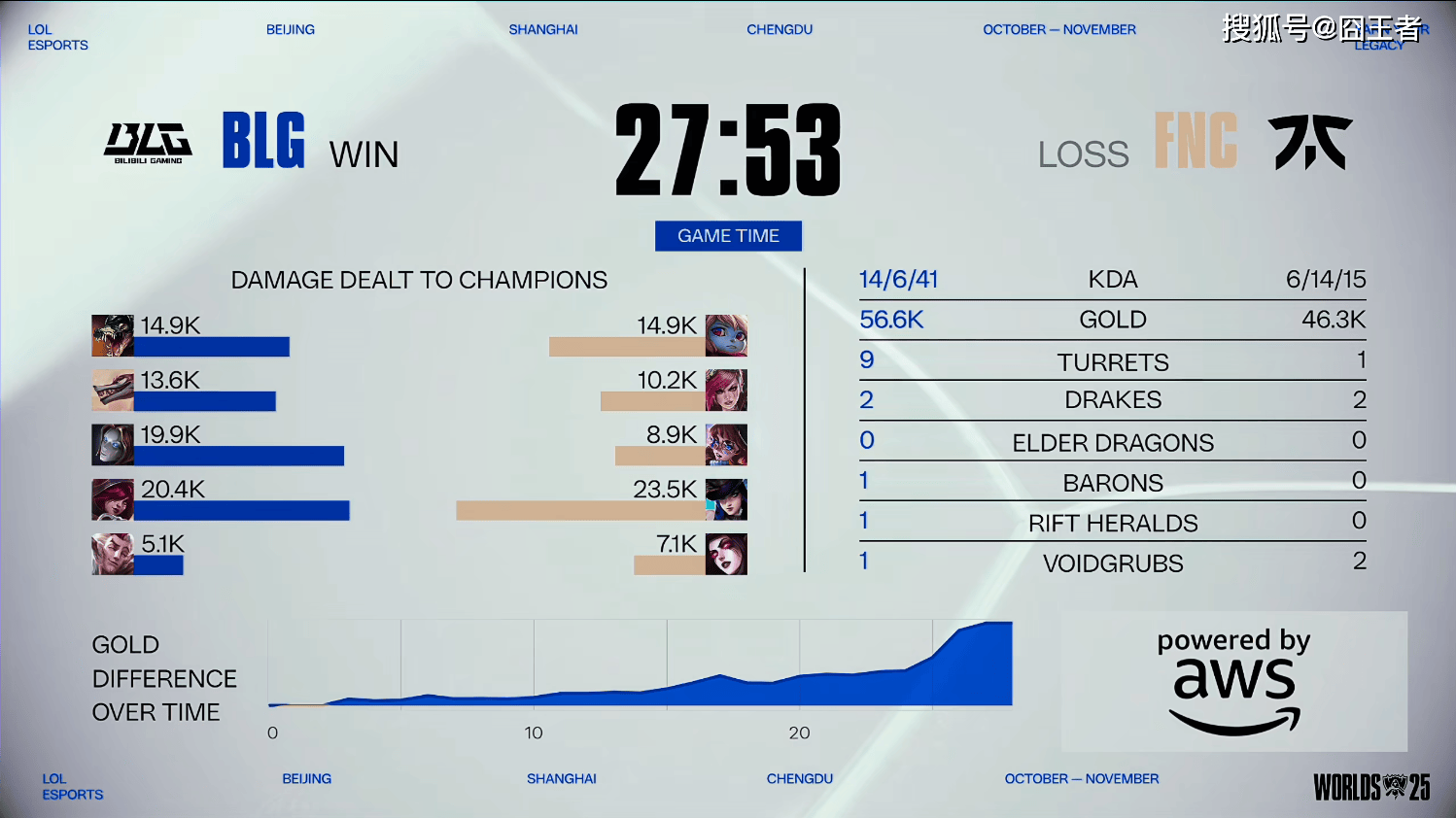 第一局比赛,BLG蓝色方,禁用:猴子;妮蔻;沙皇;兰博;塞恩,选用:Bin鳄鱼;shad0w纳亚菲利;Knight发条;Elk霞;ON洛;FNC红色方,禁用:皇子;芸阿娜;奇亚娜;梦魇;赵信,选用:Oscarinin波比;Razork蔚;Poby阿萝拉;Upset女警;Mikyx莫甘娜