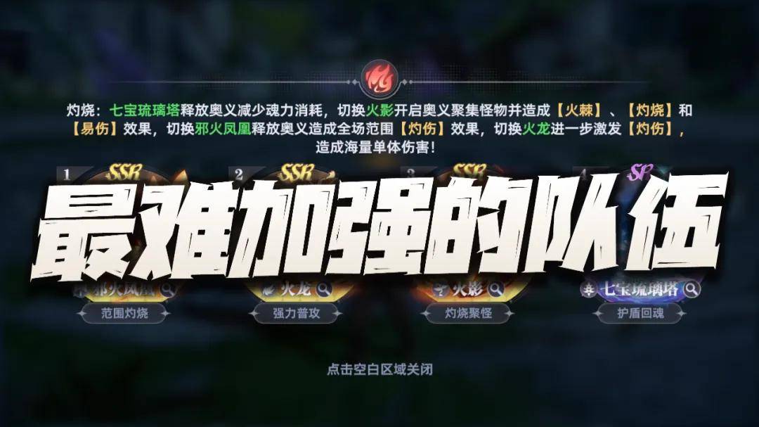 然后第二个队伍便是更......让人绝望的灼烧队,隔壁蓝龙至少还能在PVP中独领风骚,而且占有极大的优势,但反观灼烧队和其中的三大主力,试问哪一个又可以在哪个战斗场景有绝对的不可替代性呢?