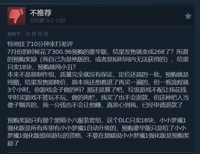 高达178元的标准版定价,游戏流程却仅为3-5小时,再加上豪华版首发降价,成功又惹怒了一批首发预购的核心粉丝。
