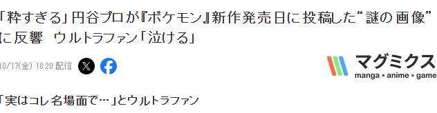 10月16日,备受期待的《宝可梦》系列新游《宝可梦传说 Z-A》正式发售,再次掀起日本社会现象话题,没想到隔壁的圆谷制作突发神秘图片,并没有留言,但是只要是系列忠粉玩家会明白庆祝《宝可梦》新游发售。