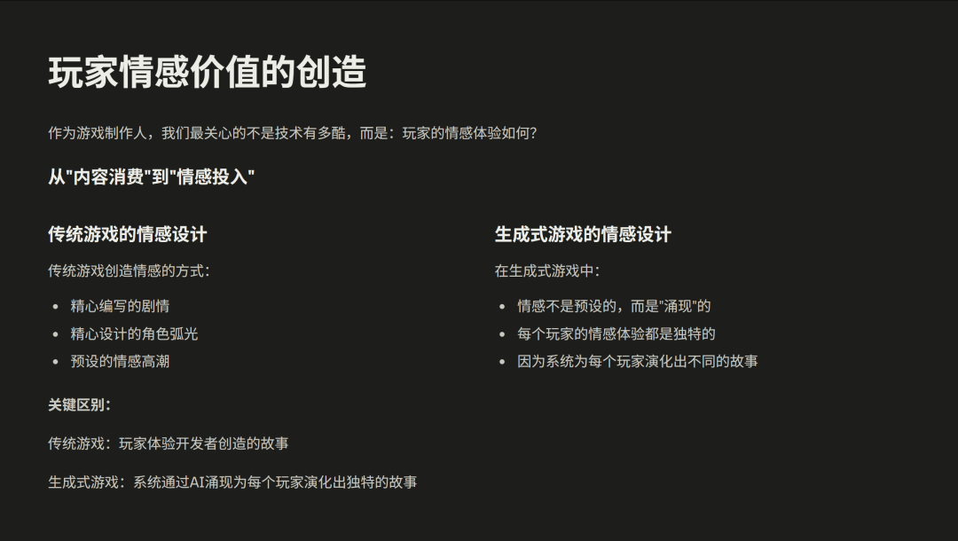真正的区别在哪里?我认为是构建数据驱动的AI游戏生态,这个是从“内容为王”到“数据为王”的一个跃迁。
