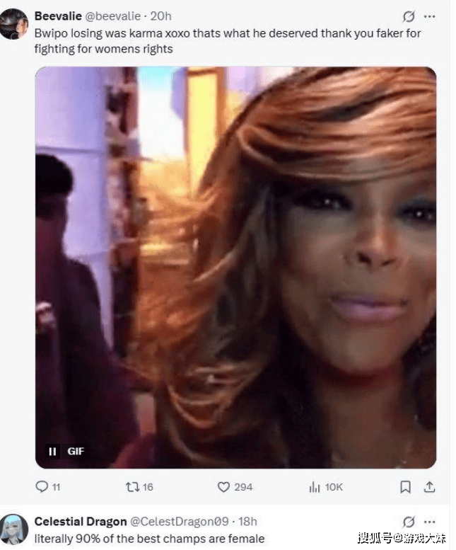 这一举动原本只是普通的战术选择,却意外引发了一场关于“性别歧视”的舆论争议,事情的起因是,一位外网知名女Coser“Jas”在推特上发文质疑FLY:“为什么只Ban女英雄?不对劲!”她的言下之意很明显,怀疑FLY在BP时的选择带有性别歧视的意味。