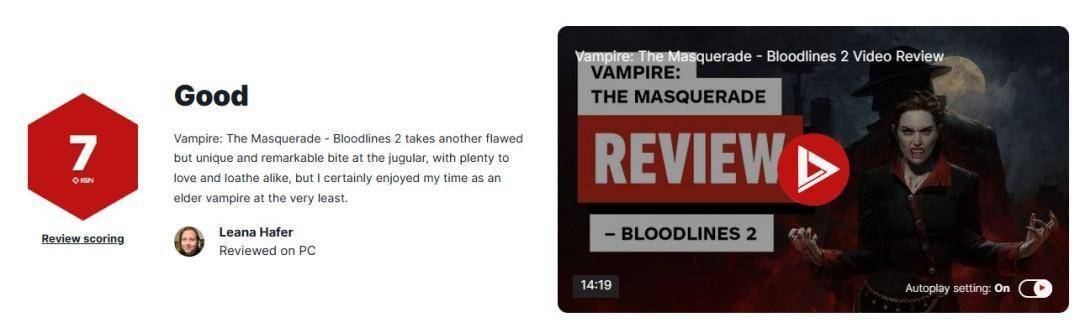 《吸血鬼:避世血族2》IGN ... 《吸血鬼:避世血族2》媒体评分出炉,该作获得IGN 7分评价,Metacritic收录21家媒体评分...