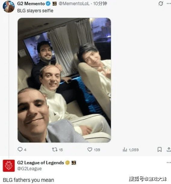 G2主教练Mement在比赛结束后,晒出队员们在大巴上的自拍,并配文:“BLG杀手们的自拍。” 这一句话瞬间引发巨大争议。更离谱的是,G2官方账号还在底下补刀评论:“你是说BLG的父亲们吗?”这番话可谓火力全开,嘲讽值拉满。