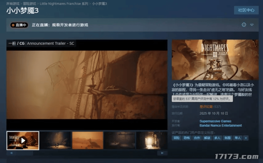 相比之下,隔壁《小小梦魇3》的好评率已经仅剩下12%了,这就是系列更换制作团队的代价。