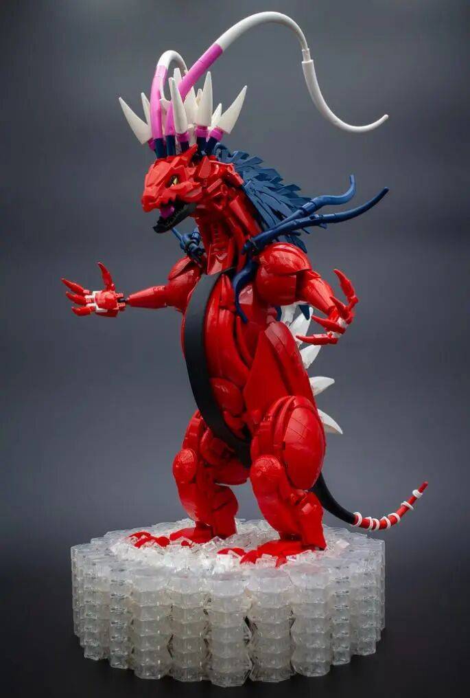 不同于大多数隐藏颗粒感的 MOC,他反而利用乐高颗粒的质感与连接方式,强化了暴鲤龙的肌肉线条与力量感。