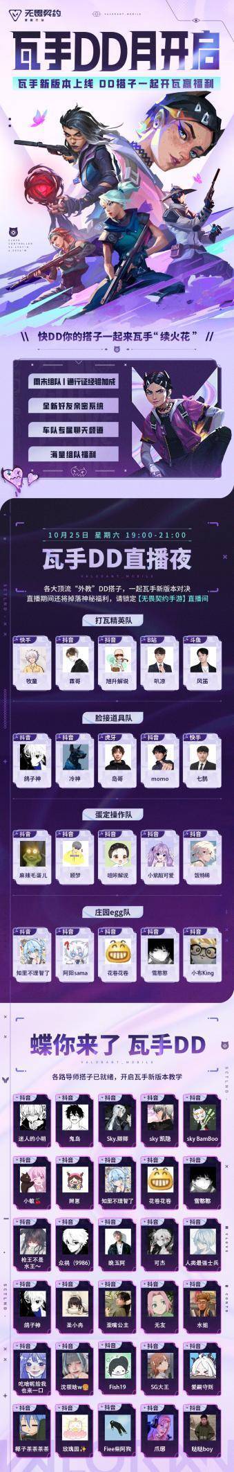 10月25日晚间,“瓦手DD夜”直播活动也将同步来袭。牧童、鸽子神等头部主播将会同台竞技,为玩家献上精彩的对决,并带来更多惊喜福利。