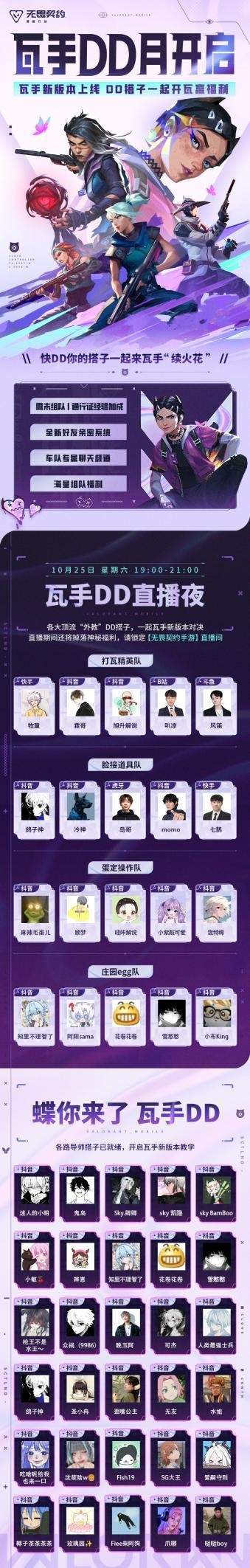 10月25日晚间,“瓦手DD夜”直播活动将同步开启。牧童、鸽子神等头部主播将同台竞技,带来暮蝶与黑梦的PK直播,为玩家献上精彩对决。海量惊喜福利也将持续放送,敬请期待!