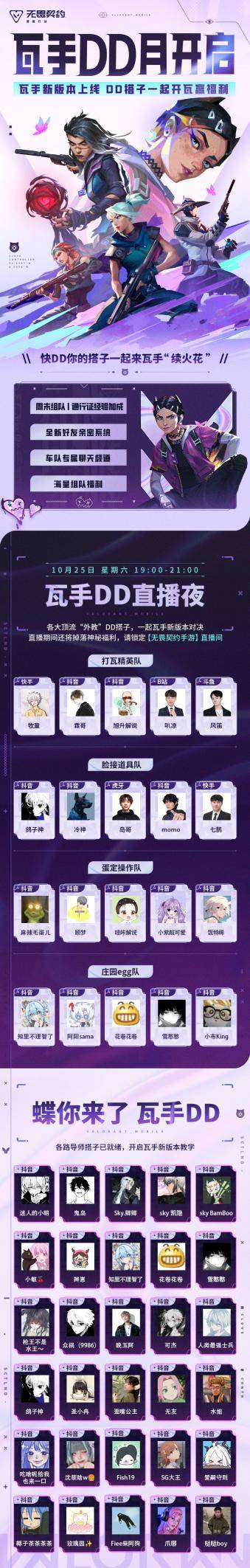 10月25日晚间,“瓦手DD夜”直播活动重磅来袭,牧童、鸽子神等头部主播同台竞技,打响暮蝶vs黑梦的PK直播,为玩家献上精彩对决,更有海量惊喜福利送不停,让玩家在享受游戏的同时,还能收获满满惊喜。