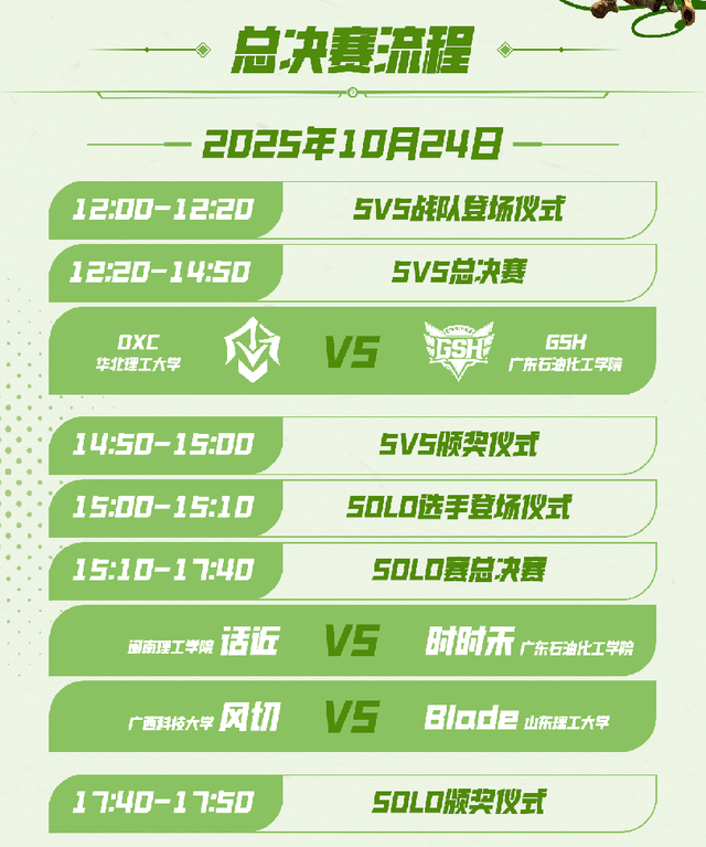 17:40-17:50:SOLO赛颁奖仪式,为1V1总决赛的冠军选手颁发奖金、荣誉证书以及“高校最强路人王”称号。