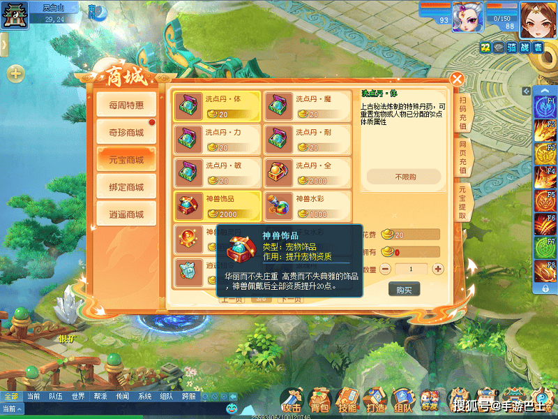 游戏中所有宠物饰品均可通过购买获得。根据宠物携带等级,在寄售商城选购对应等级的饰品即可。其中珍兽和神兽较为特殊:珍兽统一使用“珍稀饰品”,而神兽专属的“神兽饰品”则需前往元宝商城获取。