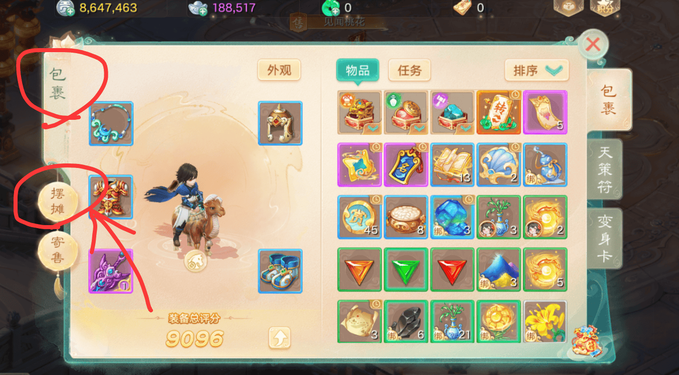 摆摊出售物品其实分为两种,一种是高价值物品,比如仙器、高装,前期评分高、属性满的装备(如双抗满的项链、武器)需求量大,定价可稍微高于市场价,留一个讨价还价空间。