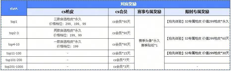 参与S3赛季并获得排名的玩家们将获得以下奖励: