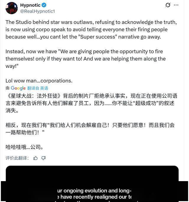 该工作室在社交媒体上将此举称为“一项自愿职业转型计划”(voluntary career transition program)。