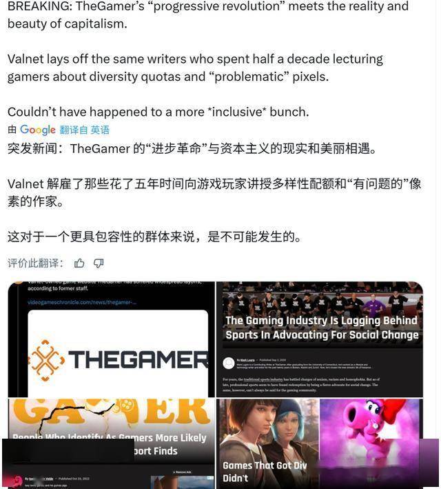 与此同时,知名“正确”媒体The Gamer也解雇了那些“正确”编辑:这些编辑花了5年时间向读者宣传多元化