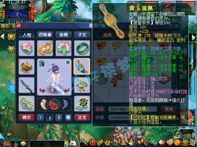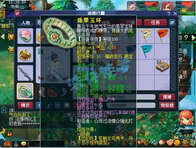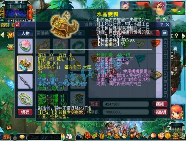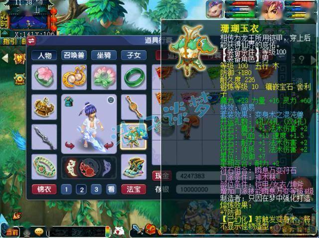 100级简易混沌兽套铠甲,魔力双加39,打了10锻舍利子。