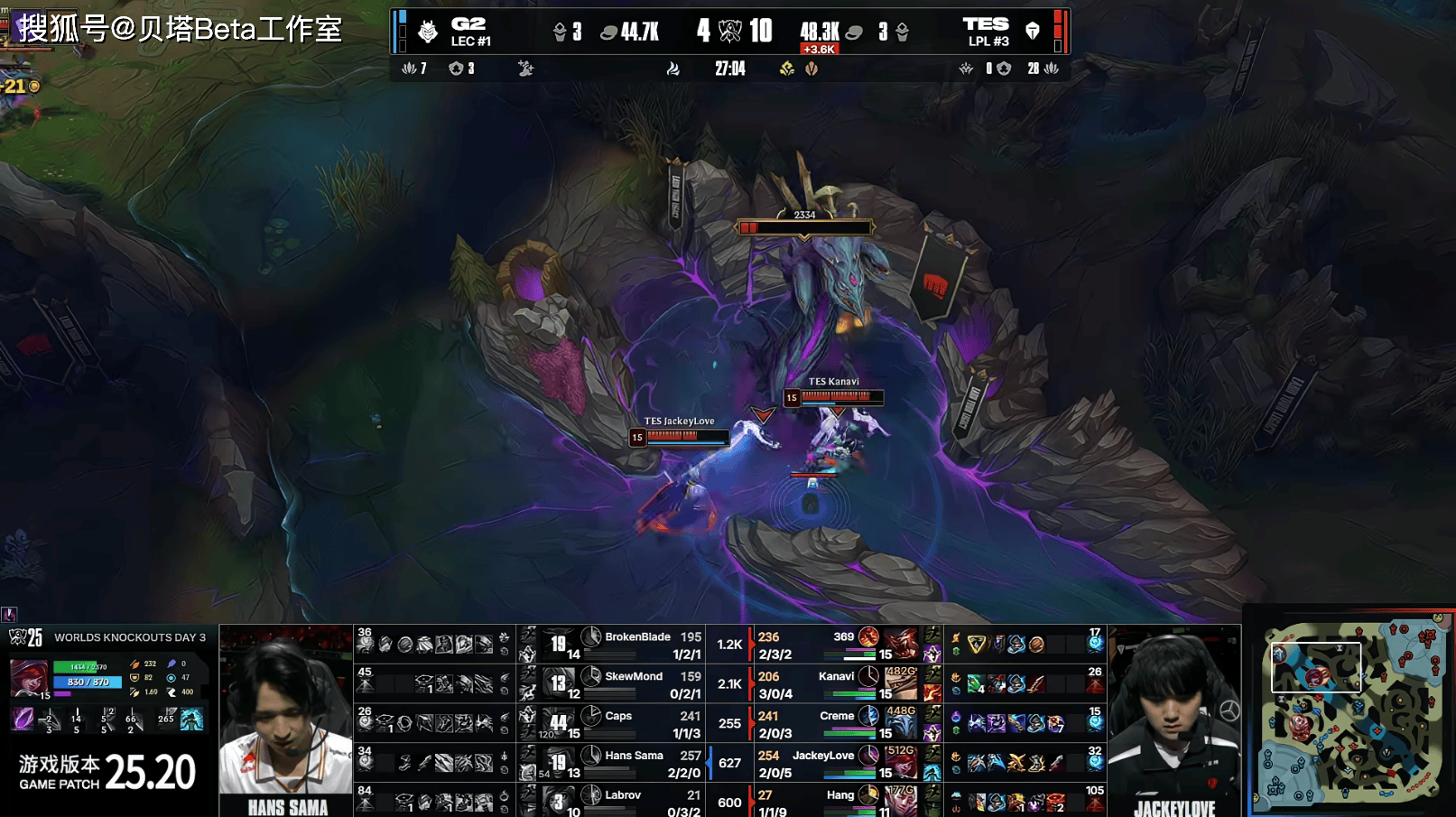 S15全球总决赛8强赛TES和G2的BO5,双方大战4局之后,TES以3-1的战绩淘汰G2,晋级4强!