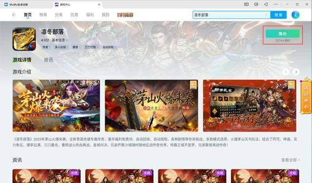 方法一:启动模拟器,在游戏中心搜索“凛冬部落”,点击预约,待游戏上线即可开启征程;