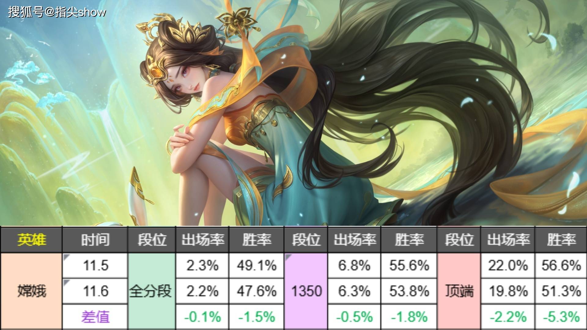 大招的基础伤害和少许的AP加成削弱,我之前就说了,伤害数值看着很卑微,但嫦娥技能从来都是以量取胜,单次伤害削弱当然没意义,但总量堆叠起来就要差了不少,而这一刀下去,顶端局胜率降幅达到了5.3%之多,是本次调整数据波动最大的英雄。