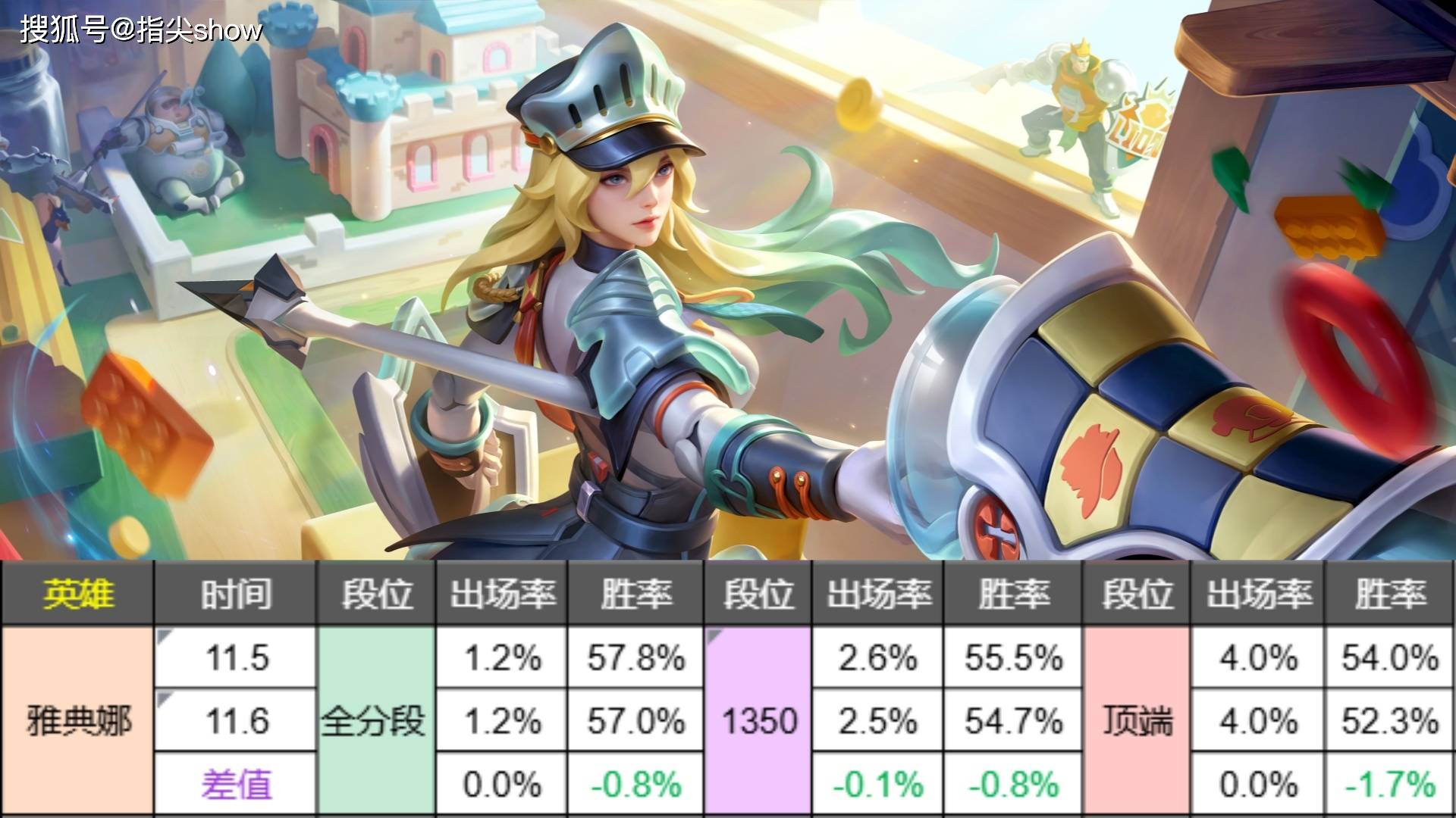 本次雅典娜削弱了一技能的基础、成长、AD伤害,全分段和巅峰赛1350还好,降幅不足1%,因为雅典娜核心输出还是强普,但对于数值更加敏感的顶端局降幅1.7%,如果是这样的数据其实我也能接受的。