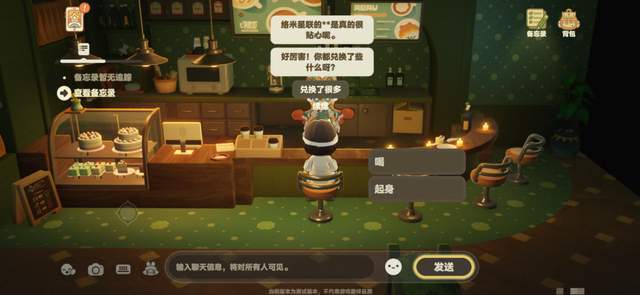 也正因此,基于这种特别的缘分,玩家一旦碰面,总会愿意聊上几句。茶馆便碰见了乐于分享家装的“星友”,她表示:“我家里的风格,装修得和《动森》里的家一样。”此外,我还偶遇了种田大佬分享经验,他将所有树木摆成防风林,便于日常敲打、获取资源。