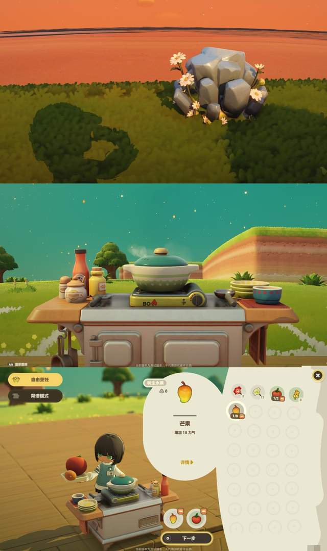 也正基于这种慢生活美学体验,《星布谷地》作为一款内容产品,埋藏在其场景和文案中的细节,也有机会逐步被玩家发现。比如石堆的缝隙中,长出了鲜花。有时,仅仅站在锅炉前,开发不同的烹饪菜谱也很新奇。