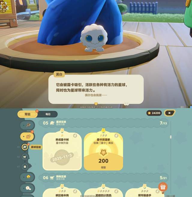 所有的探索目标也将和居民心愿相连。心愿完成,获得露卡果实促成星球树成长,星球将获得更多耕地和奇景,让探索和成长形成有效的资源循环,也体现出“用生活种出一颗星球”的含义。