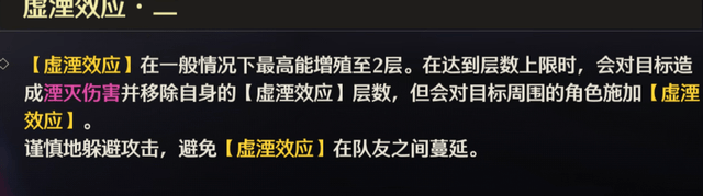 首先是虚湮效应,之前的虚湮是两层上限后造成湮灭伤害并且能传染,新版重做了整体效果,最高层数三层,每层可降低2%防御,最高降低6%防御,虽说无视防御这种BUFF是高贵的乘区,但这个数值是不是给的有点太低了?