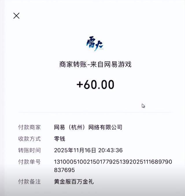 说起来,逆水寒黄金服是真的给力,这已经不是它第一次给我打钱了,之前玩龙虎区开服就是100万人民币金条大赛,还每个月给玩家发一次工资,那次我也拿了好几百块。
