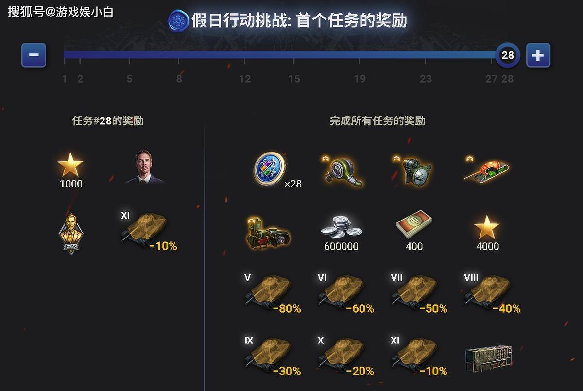 而今年还有个好消息是,霞飞狗将在活动结束后常驻游戏,并为每天的前十局战斗提供10%的银币加成。霞飞狗的获取方式也很简单,再完成假日行动挑战的时候,卷福会顺便发一个精通印章给到大家,完成所有任务后就能让它加入车库了。