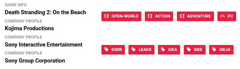 《死亡搁浅2:冥滩之上》很快将移植PC平台了,外媒Gematsu最近发现其PC版的ESRB评级。