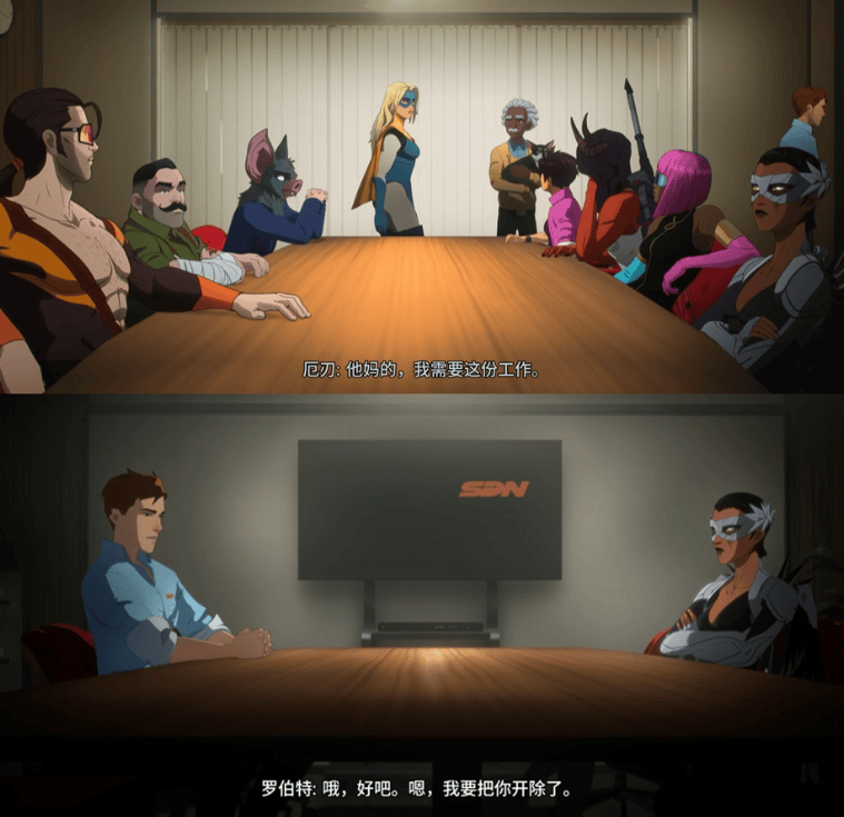 编剧有意回避俗套的宏大叙事,里面既没有“钞能力”英雄,也没有“欧米茄”级灭世神力,甚至也不像《黑袍纠察队》那般,去设置一个不做人的资本巨鳄,为了制造戏剧冲突,把每个“英雄”都写得像神经病。在这个世界观里有的,只是鸡零狗碎的职场琐事,英雄们当打工仔也无非是找个班上,作为员工他们关心的是绩效、考评和人际关系。而玩家作为中层领导,关心的是公关形象、团队氛围,以及客户的好评。