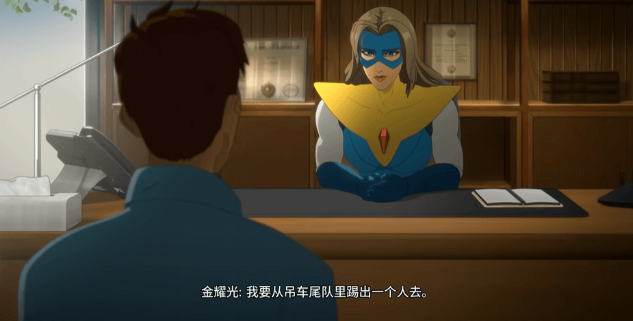 直到《超英派遣中心》公布预告,画中人那眼窝独特的阴影、鼻翼线条的画法,唤起我心中的熟悉感。女主之一金耀光开口,正是“白雪公主”的声线埃琳·伊薇特(Erin Yvette)的声音。乍一看,甚至连人设都是如出一辙,也是女上司,也懂得照顾人,还有些小心机。