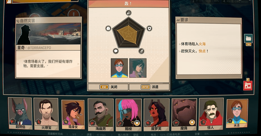 简单讲,上班时间玩家需要扮演“接线员”,承接客户订单。这些订单,会有一个模糊的任务描述,而玩家要做的就是选择适合特定任务的英雄派遣——需要“拆炸弹”的不能派傻大个过去,需要上电视打广告的,就该请魅力高的角色过去。
