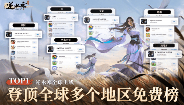 在国外,《逆水寒》手游同样表现亮眼。其国际服上线之前就超千万预约,Steam版本超600万预约,国际服上线后迅速登顶日本、马来西亚、泰国等多个国家和地区的App Store免费榜。