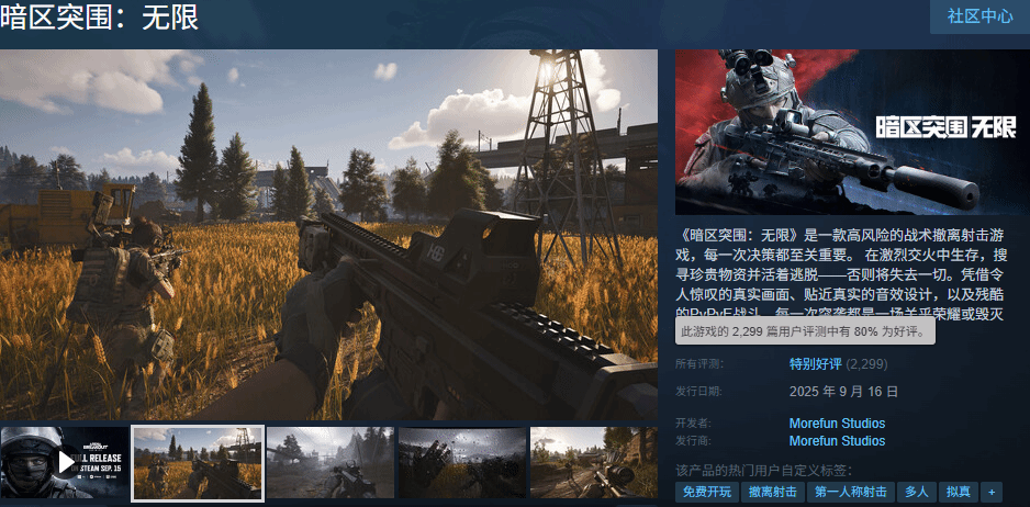 暗区端游正式上线后,迅速登上 Steam 好评榜,并收获 80% 的特别好评。