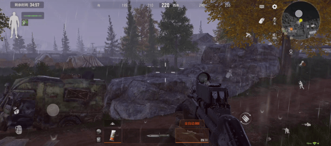 不仅如此,游戏后来也加入了移动打药,投掷道具的抛物线和准星显示也加了进来,就连右上角都多了个小地图,能实时查看玩家周围的情况与所处位置。
