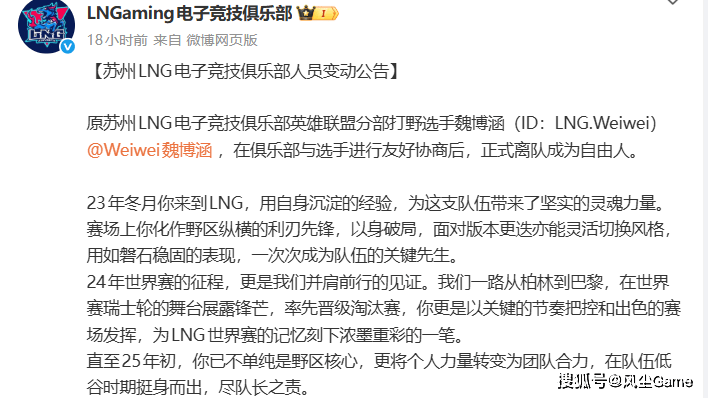 LNG近日发文官宣:Weiwei正式离队,这位打野选手,绝对是LPL最大的薪资“小偷”,S13赛季搭档TheShy和小虎等人,混了个世界亚军,左雾觉得他强,直接给大合同挖过来,结果回到联赛,就原形毕露,第一年还有登场机会,后面两年,直接被下放替补席,雪藏到合同结束才放出来。
