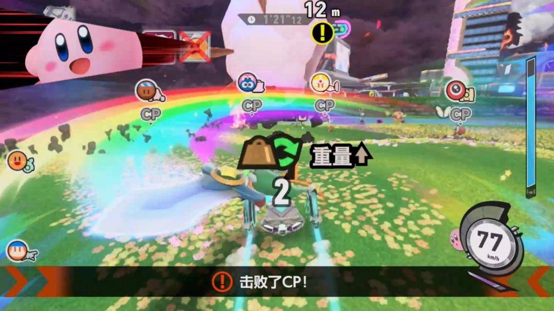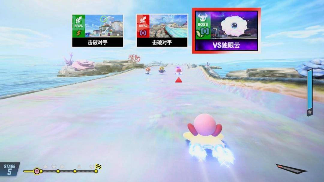 上述这些,还只是本作中“B键”的其中一个用法——别忘了,这不仅是一款竞速游戏,更是一款“卡比”游戏,而任何“卡比”游戏都少不了粉色恶魔的战斗爽。